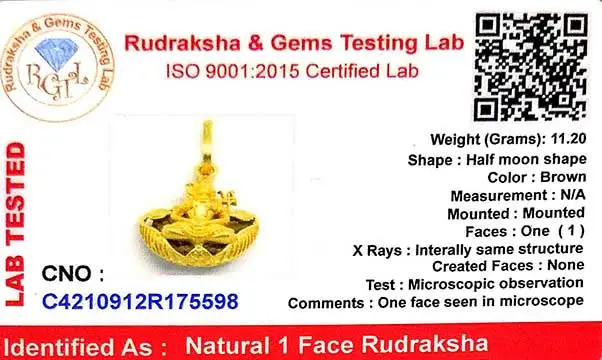 According to Shrimad Devi Bhagwat Mahapuran, one faced Rudraksha is the form of Lord Shiva. It gives freedom from sins up to Brahmahatya. This Rudraksh is the illuminator of the Paramatattva, so by wearing this one face Rudraksh one gets realization of that Parbrahma.